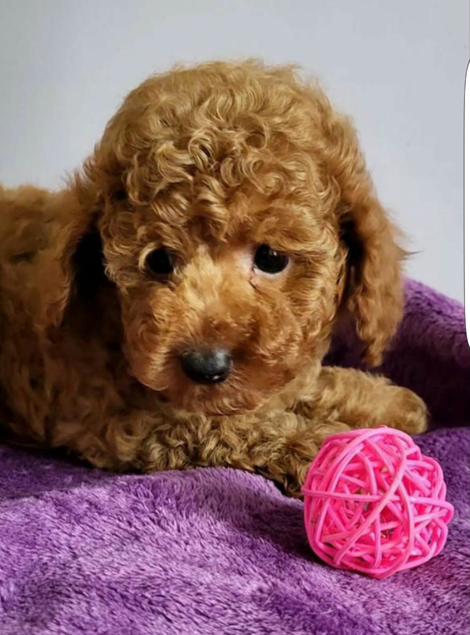 У малышки густая набивная шерсть с правильным завитком, прикус 6/6, правильная анатомия корпуса ,правильный постав хвоста.От красивой породной красной пары РКФ. Имеет документы РКФ ветпаспорт. Привита, обработана по возрасту.